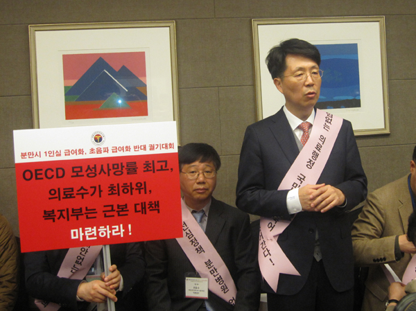 김동석 직선제산부인과의사회 회장은 "복지부는 열악한 산부인과의 상황을 무시하고 대책도 없이 올해 9월부터 산모 상급병실과 초음파 급여화의 일방적인 정책을 추진하고 있다"며 산부인과 전문의의 목소리를 외면한 탁상공론이라고 비난했다.
