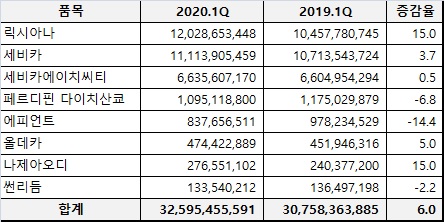 세비카(성분 암로디핀+올메사르탄) 역시 꾸준한 4%대 안팎의 성장세를 보이며 회사 성장에 견인했다.