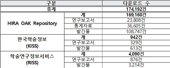 현재까지 채널별 누적 다운로드 수가 약 17만 건에 달하며, 한국학술정보(KISS), 학술연구정보서비스(RISS)와도 자료를 연계해 심사평가연구소의 연구성과 공유·확산 채널도 확대했다.