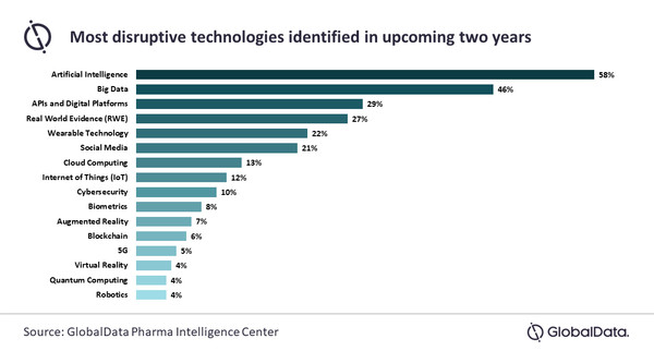 글로벌데이터의 최신 보고서를 보면, AI(58%)에 이어 빅데이터(46%)가 향후 2년 이내에 제약업계에서 가장 파괴적인(혁신) 기술이 될 전망이다.