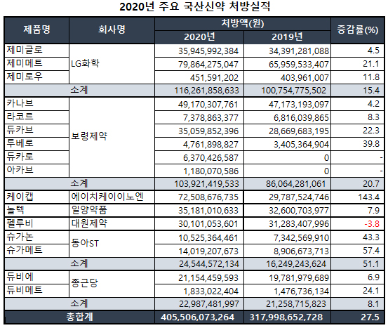 지난해 주요 국산신약들은 30%에 가까운 증가율을 보여 코로나19 확산에도 여전히 성장세에 흔들림 없는 모습이다.