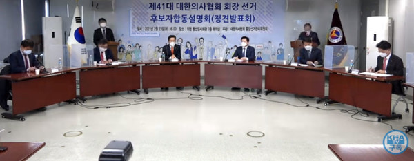 대한의사협회 중앙선거관리위원회는 23일 오후 4시 제41대 대한의사협회 회장 선거 후보자합동설명회(정견발표회)를 용산임시회관 7층 회의실에서 개최했다.