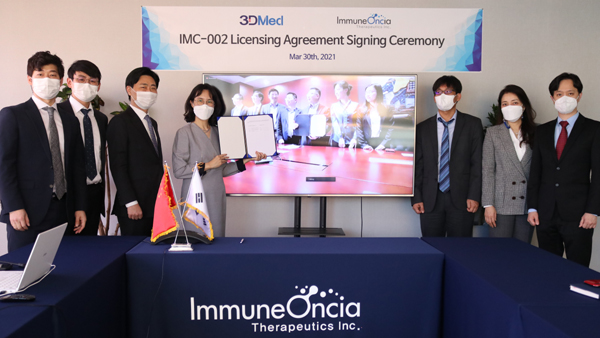 이뮨온시아(대표 송윤정)는 중국 차세대 면역항암제 개발기업 3D메디슨(3D Medicines)과 총 4억 7050만 달러(약 5400억원) 규모의 기술이전 계약을 체결했다고 31일 밝혔다.
