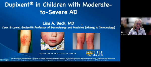 6~11세의 아토피 치료에도 국내 적응증을 확보하게 된 사노피 아벤티스의 듀피젠트에 대해 세계적인 석학 리사 벡 교수(로체스터 의과대학)가 "소아·청소년의 아토피 치료에 '게임체인저'가 될 것이라는 피부전문지의 헤드라인에 대해 나 역시 동의한다"며 "(미국에서)나를 찾아오는 소아·청소년 환자의 투여 결과를 보면서 나 역시 그런 생각을 하고 있다"고 말했다.