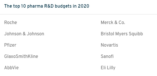 머크는 2019년 연구투자비 규모 3위를 보이다 난해 J&J를 누르고 2위로 뛰어 올랐다. 머크의 연구투자비의 상승은 지난해 하반기 코로나19와 관련한 일련의 계약들에 의한 것이다.
