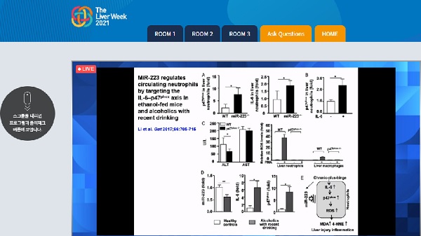 마치 학회장을 그대로 옮겨놓은 듯한 'The Liver Week 2021' 홈페이지는 학회 참가 신청을 사전에 낸 참여자들에 한해 비밀번호를 부여하는 등 나름의 보안에도 철저를 기했다.