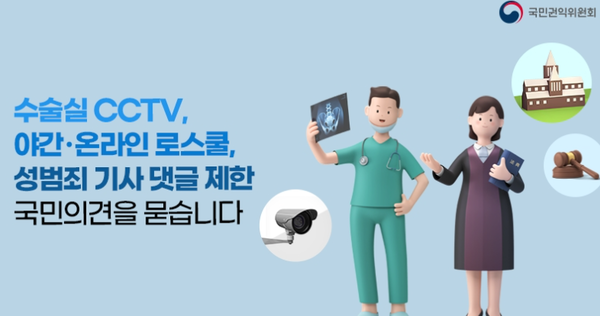 국민권익위원회도 지난달 31일부터 ‘수술실 CCTV 설치’에 관한 찬반여론을 조사 중이며, 조사는 오는 6월 13일까지 진행된다.