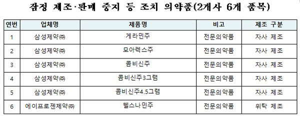 식약처는 지난달 10일 삼성제약의 '삼성이트라코나졸정'에 대해서도 품목 허가취소한 바 있다.