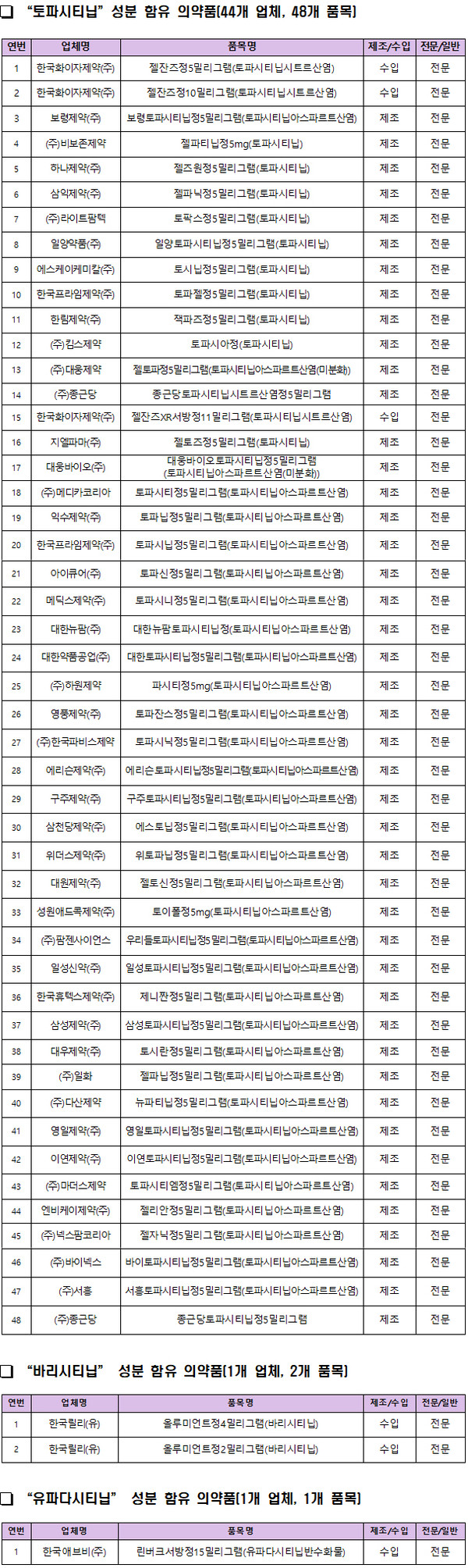 토파시티닙과 동일한 기전을 가진 바리시티닙, 유파다시티닙 성분 제제의 경우도 유사한 위험을 수반할 것으로 간주했다.