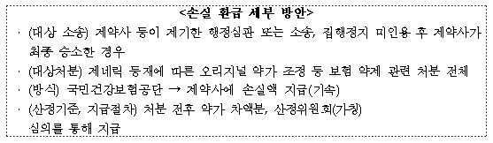 또 약가조정 등에 대한 제약사의 소송 및 집행정지 신청이 증가함에 따라 손실환급제도를 도입하는 방안도 마련된다.
