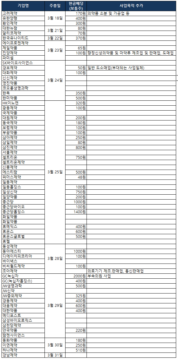 올해 국내 주요 상장 제약사들의 주주총회 일정은 3월 25일에 집중된 것으로 나타났다.