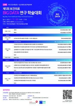 또한 이어지는 ‘빅데이터 연구 방법론’ 세션에서는 건강보험 빅데이터에 접근하는 방법과 분석기법에 대한 경험을 공유하고 빅데이터 활용방안을 제시해 주는 시간이 마련되어 있다.