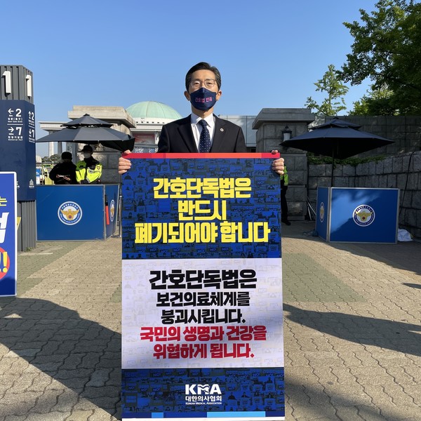 한편 이날 1인 시위에는 이필수 대한의사협회장 외 이정근 간호단독법 저지 비상대책특별위원회 공동 위원장, 곽지연 대한간호조무사협회 회장 등이 함께 했다.