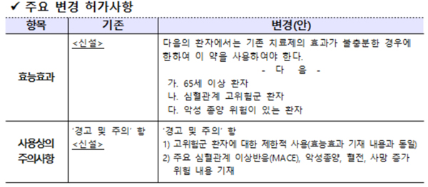 이번 조치는 식약처가 지난해 9월 ‘의약품 안전성 서한’을 배포한 이후 진행된 안전성 검토 결과에 따른 후속 조치로 의견조회 절차를 거쳐 7월 중 허가사항을 변경하도록 명령할 계획이다.