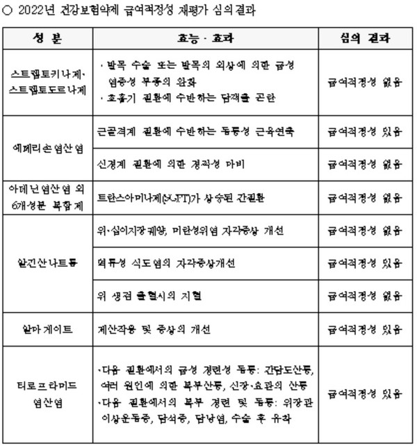 건강보험심사평가원 약제급여평가위원회(이하 약평위)는 7일 2022년 급여적정성 재평가 결과를 공개했다.