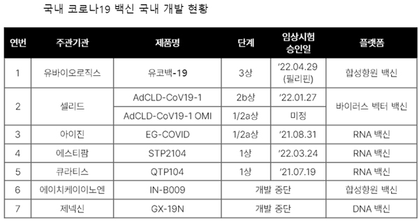 간담회는 코로나19 백신 임상지원 사업 지원 기관 7새사 ▲㈜셀리드 ▲아이진 ▲에스티팜㈜ ▲에이치케이이노엔㈜ ▲유바이오로직스 ▲㈜제넥신 ▲㈜큐라티스의 연구책임자가 온라인으로 참석했다.