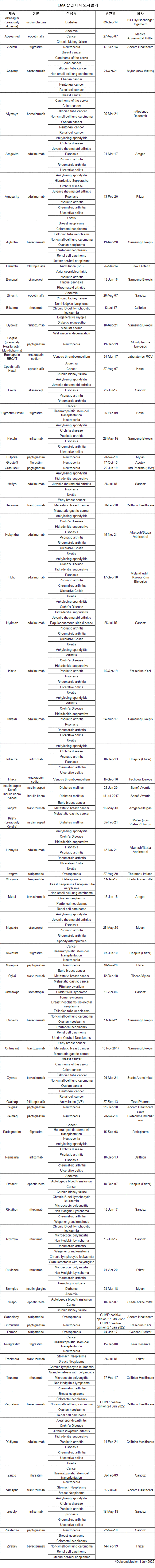 2022년 7월 기준 미국에서 36개, 유럽에서 73개의 바이오시밀러가 승인됐다.