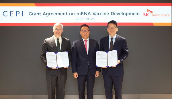 SK바이오사이언스와 CEPI(전염병대비혁신연합)는 25일 서울 광진구에 위치한 워커힐 호텔에서 협약식을 개최하고 mRNA 백신 개발에 협력키로 했다고 밝혔다.