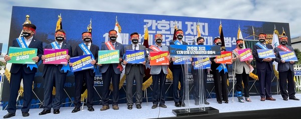 13개 단체 보건복지의료연대가 간호법 저지를 위한 릴레이 1인 시위를 이어가고 있는 가운데, 대한의사협회는 오는 27일(일) 오후 2시, 국회 의사당대로에서 ‘간호법 제정 저지를 위한 13개 보건복지의료연대 십만 총궐기대회’를 개최하기로 했다고 밝혔다.