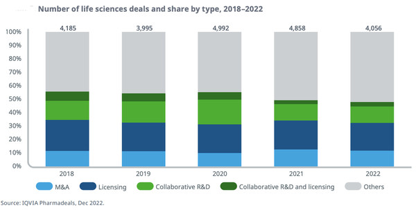 또한, 코로나19 팬데믹의 여파로 2020년과 2021년 생명과학 기업 사이에 바이오파마 투자 흐름이 감소했지만, 2022년 팬데믹 이전 수준으로 회복됐다.