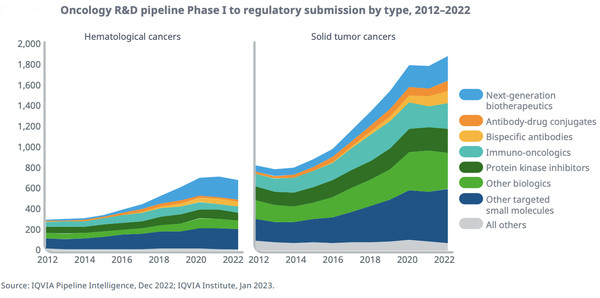IQVIA는 종양의 증가는 대규모 집단을 다루는 큰 종양에 대한 치료제에 지난 수년간 초점을 맞춘 것에 기인한다고 설명했다.