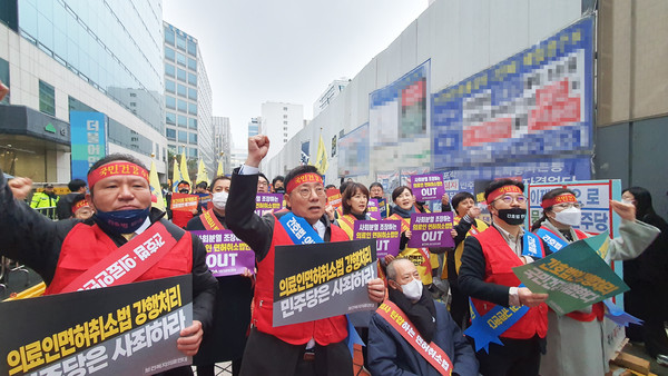 이들은 투쟁 결의문을 통해 "더불어민주당은 지난 2020년 4대 의료악법 강행에 맞서 저항했던 의사들에게 앙심을 품고 의사들을 탄압하기 위해 의료인 면허강탈법을 발의해 의사와 모든 의료인들의 손발을 묶으려 하고 있다"며 "갈라치기를 통해 보건복지의료인들의 단합을 저해시키려 간호사특혜법을 발의하기에 이르렀다"고 비난했다.