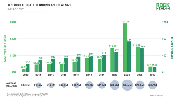 컨설팅업체인 록 헬스(Rock Health)의 새로운 보고서에 따르면, 올해는 지난 3월 실리콘 밸리 은행(SVB)이 파산하기 전 디지털 헬스 펀딩에 대한 반등의 해로 진행되고 있었지만, 이후 유사한 은행들이 파산하면서 디지털 헬스 편딩의 미래가 다시 혼란에 빠졌다.