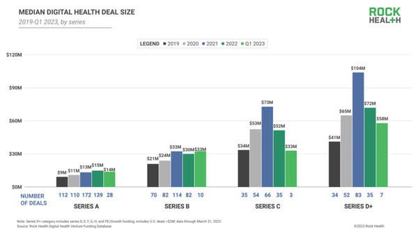 올해 1분기 동안, 가치 기반 제공업체 모노그램 헬스(Monogram Health)의 3.75억 달러 자금 조달 라운드, 헬스 인력 스타트업 시프트키(ShiftKey)의 3억 달러 라운드, 임상시험 기술 플랫폼 파라짐(Paradigm)의 2억 300만 달러 시리즈 A, 헬스 인력 관리업체 시프트메드(ShiftMed)의 2억 달러 자금 조달 라운드, 의료보험 회사 그라비(Gravie)의 1.79억 달러 주식 투자, 공급자 지원 플랫폼 바이탈리즈 헬스(Vytalize Health)의 1억 달러 라운드 등 6건의 메가딜이 있었다.