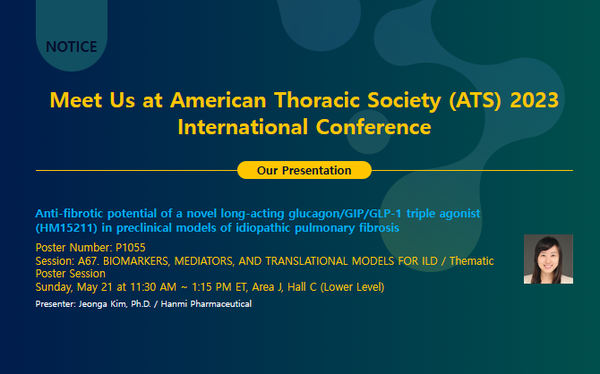 이번 ATS에서 발표한 연구 결과는 특발성 폐섬유증 모델에서 LAPSTriple agonist의 효력을 평가한 것이다. 한미약품에 따르면 이 연구에서 LAPSTriple agonist 반복 투약시 혈중 산소포화도가 증가하고 섬유화 지표들이 유의하게 개선된 점을 확인했다. 이 같은 섬유화 진행 억제 및 폐 기능 개선을 통해 동물모델에서 질병 진행에 따른 사망률을 낮췄다.