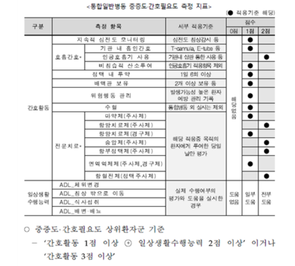 간호간병통합서비스가 처음 도입 취지와는 달리 중증환자는 외면하고 경증환자 위주로 운영되고 있다는 지적이 제기되고 있다.