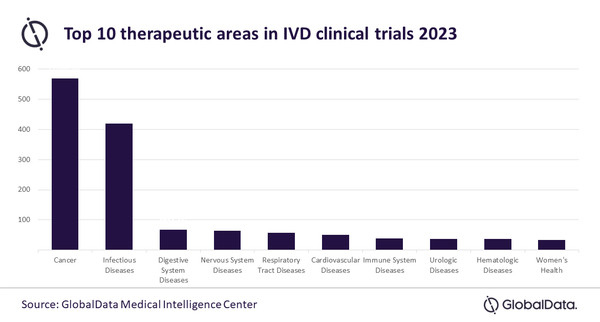 데이터 및 분석업체인 글로벌데이터의 보고서를 보면, 현재, 1490건의 활발한 임상시험 중, 569건은 암에 대해 IVD 기기 개발에 초점을 맞추고 있다.