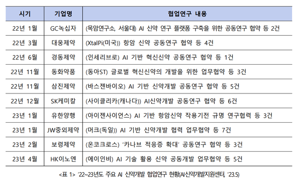 더불어 보고서는 "컨소시엄 형태의 AI 신약개발 R&D 프로젝트는 공동연구 활성화는 물론 우리나라 AI 신약개발 생태계에 역동성을 불어넣어 혁신의 가속화를 가져올 것"이라며 "AI 신약개발 교육의 확대를 통해 융합인재 공급 시스템도 확보해야 한다"고 말했다.