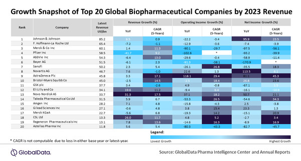 데이터 및 분석 회사인 글로벌데이터의 최신 보고서를 보면, 상위 20개 글로벌 혁신 제약사는 2023년까지 매출 8160억 달러로 전년대비 1.6% 감소했다.