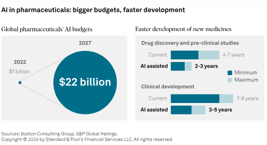S&P는 AI가 더 많은 블록버스터 약물을 생산할 것이라고 생각하지 않지만, 대신 개발 일정을 줄이는 데 도움이 될 것으로 보고 있다.
