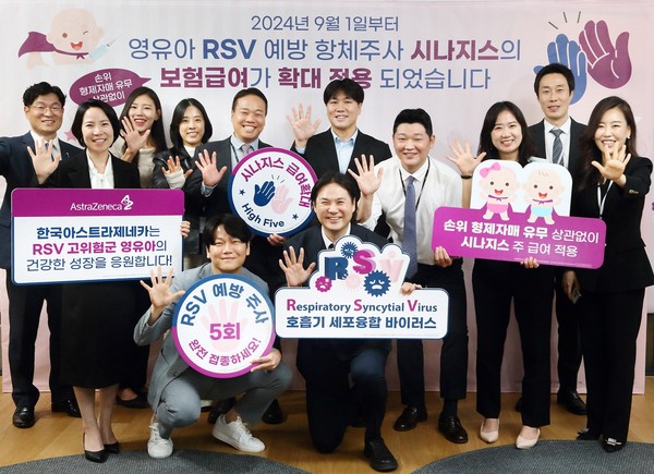 한국아스트라제네카 호흡기 면역사업부 김지영 전무는 “이번 이벤트의 슬로건인 <High five to SYNASIS, Cheer up to Patients>에서 High five는 시나지스의 보험 확대를 환영하고, Cheer up은 RSV고위험군 영유아의 건강한 성장을 응원하는 한국아스트라제네카의 염원을 담은 것”이라며, “한국아스트라제네카는 앞으로도 심각한 초저출산 사회에서 영유아 건강 증진에 기여할 수 있도록 노력하겠다”고 강조했다.
