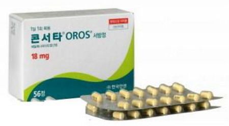 ‘메틸페니데이트염산염’을 주성분으로 하는 다양한 함량 및 제형의 제품이 허가 승인돼 시판 중에 있다. 다만, 현재 콘서타OROS서방정과 동일한 함량 및 제형으로 허가된 제품은 없다.