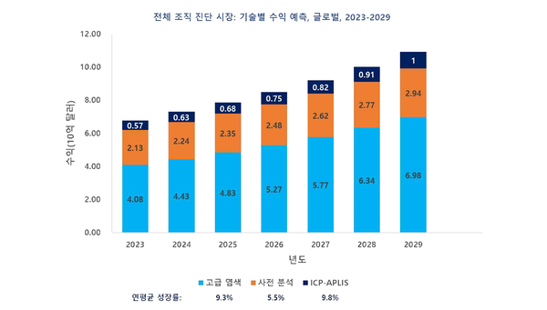 글로벌 전체 조직진단 시장은 2023년 67억 9000만 달러에서 연평균 8.2% 성장해 2029년 109억 2000만 달러 수익을 기록할 것으로 전망된다.