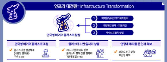 범부처 합동으로 마련한 '대한민국 바이오 대전환 전략'의 핵심 내용은 다음과 같다.