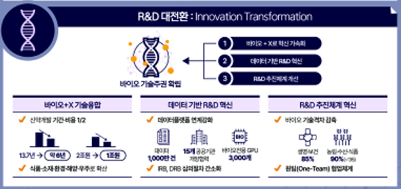바이오 기술을 다양한 산업에 파급해 혁신을 가속화하고, 데이터 기반 R&D 패러다임 전환, R&D 투자 체질개선을 통해 바이오 기술주권을 확립할 계획이다.