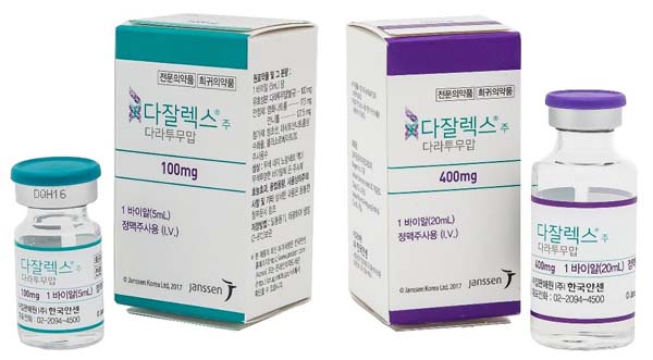 다잘렉스는 다발골수종세포에서 발현하는 CD38 단백에 결합하는 단클론항체 의약품으로, 2017년 재발성 또는 불응성 다발골수종 환자의 4차 단독요법 치료제로 계열 최초 국내 허가 승인을 받았다. 이후 2019년에 4차 치료에 대한 급여가 적용됐으며 , 같은 해와 2020년에 다양한 임상 데이터를 통해 5가지의 1, 2차 적응증에 대해 허가를 확대했다.