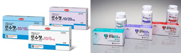 대조약은 '로수젯10/20mg(성분명 로수바스타틴+에제티미브), '칸데암로정16/5mg(성분명 칸데사르탄+암로디핀)'이다.