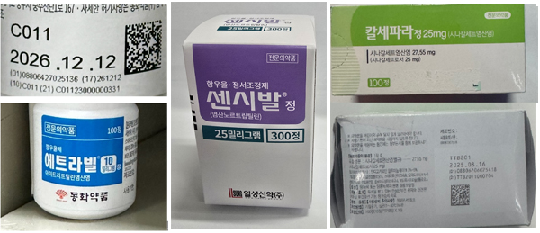 회수 품목은 시나칼세트염산염 성분과 아미트리프틸린염산염, 염산노르트립틸린 3개 성분이다.