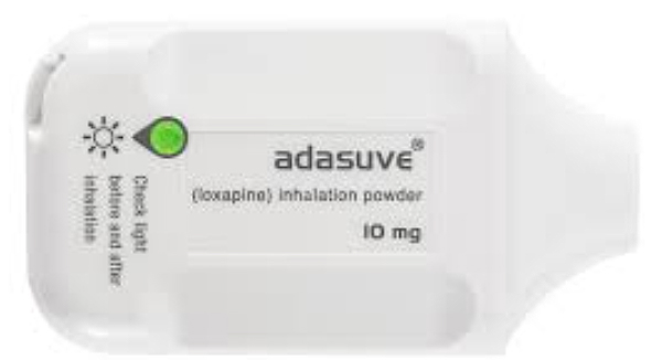아다수브흡입제는 조현병 및 양극성 장애에 수반되는 경도 및 중등도 초조 증상의 빠른 조절에 사용된다.