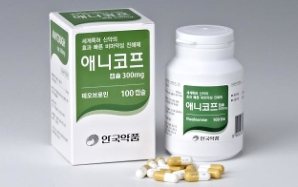 오리지널 의약품은 안국약품이 세계 최초로 개발한 테오브로민 성분의 비마약성 진해거담제 '애니코프 캡슐'로, 2008년 5월 국내 허가를 받았다.