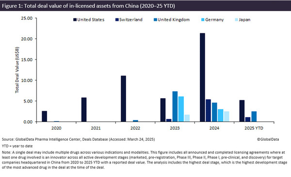 데이터 및 분석 회사인 글로벌데이터에 따르면, 대형 제약사가 2024년에 중국 바이오파마 회사로부터 혁신 약물의 28%를 인라이선싱해, 중국 약물 후보에 대한 라이선스 계약이 급증했다.