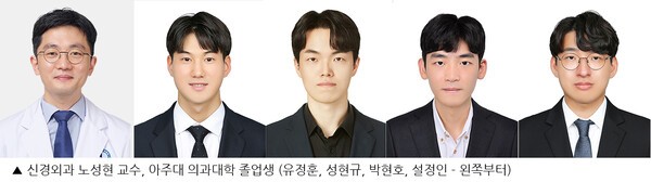 아주대학교 의과대학 졸업생 유정훈·성현규·박현호·설정인이 아주대병원 신경외과 노성현 교수의 지도로 수행한 연구 논문이 세계 최고 권위의 신경외과 국제학술지 Neurosurgery에 게재됐다.